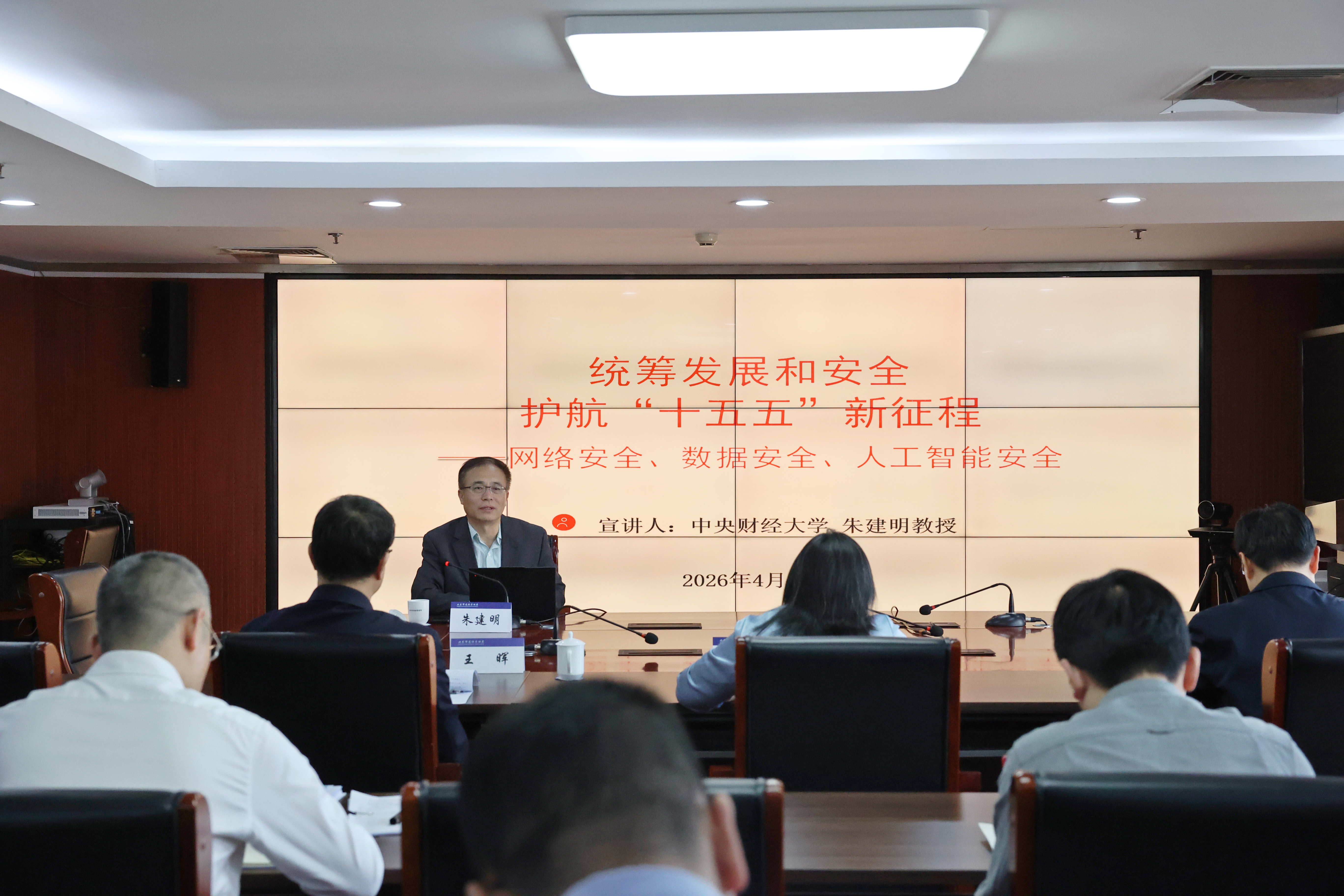宣讲过程中,朱建明教授凭借深厚的专业知识与丰富的研究经验,在介绍总体国家安全观背景、内涵、外延和核心要义的基础上,结合当前国家安全新形势、重点领域风险防范,以网络安全、数据安全、人工智能安全等三个重点领域,结合具体案例,解读了坚持总体国家安全观的重要性,详细介绍了网络安全面临的挑战和主要核心技术、数字经济背景下数据安全对发展数据要素相关应用的影响和对策以及在当前大模型快速发展的情况下,人工智能面临的新的挑战和需要注意的问题。进一步深化了对总体国家安全观的理解和把握,也明确了自身在维护国家安全中的责任和具体路径。